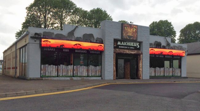 Outdoor digital LED signage at Makhulu 5 in Lisburn